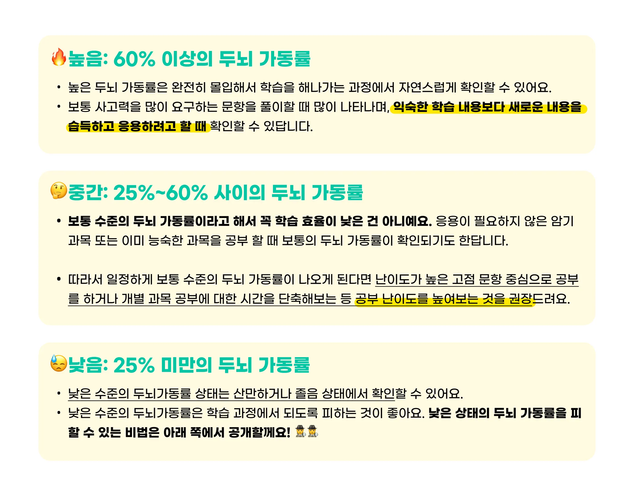 그럼 두뇌 가동률이 높고 낮음의 기준은 어떻게 될까요? 아래 사진을 확인해주세요!